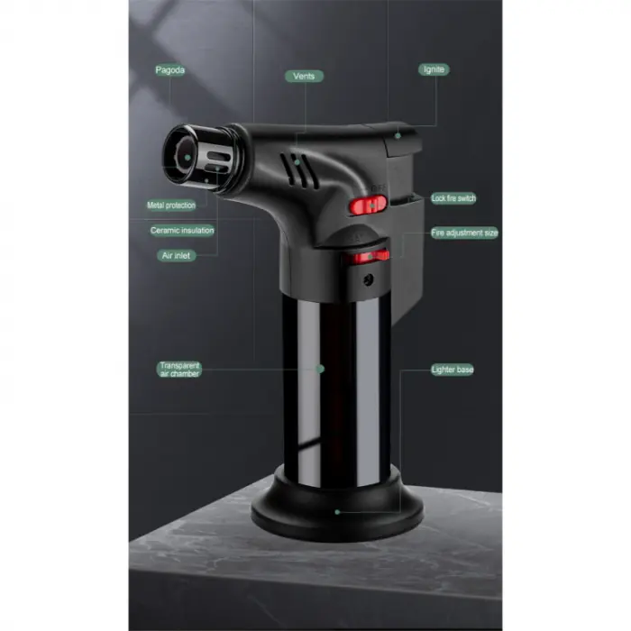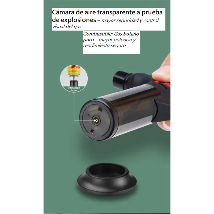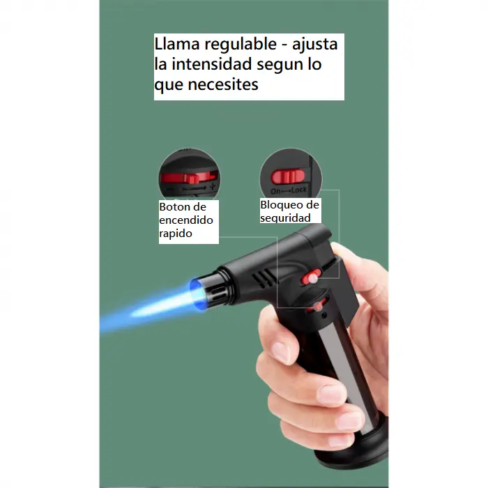 Práctico y seguro, este encendedor tipo soplete es perfecto para quienes buscan potencia y comodidad.