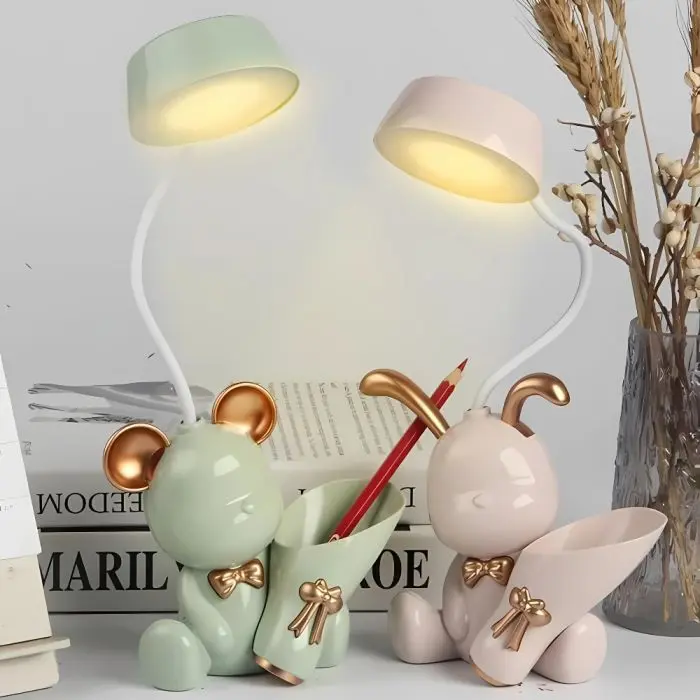 ✨ Lámpara velador con porta lapiceras y sacapuntas