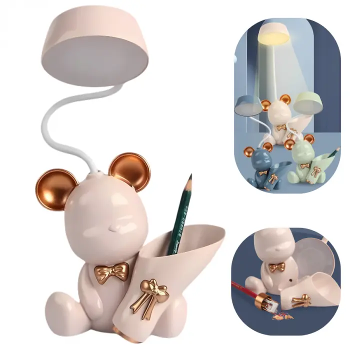 Práctica, moderna y multifuncional. Este velador combina iluminación LED cálida con un diseño pensado para el estudio o la oficina: incluye porta lapiceras y sacapuntas integrado. Ideal para escritorios de niños, adolescentes o para tu espacio de trabajo.