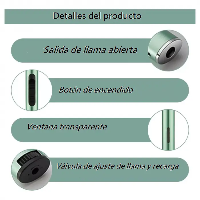 Diseño seguro de cuello largo: evita quemaduras y permite encender de forma cómoda y precisa.