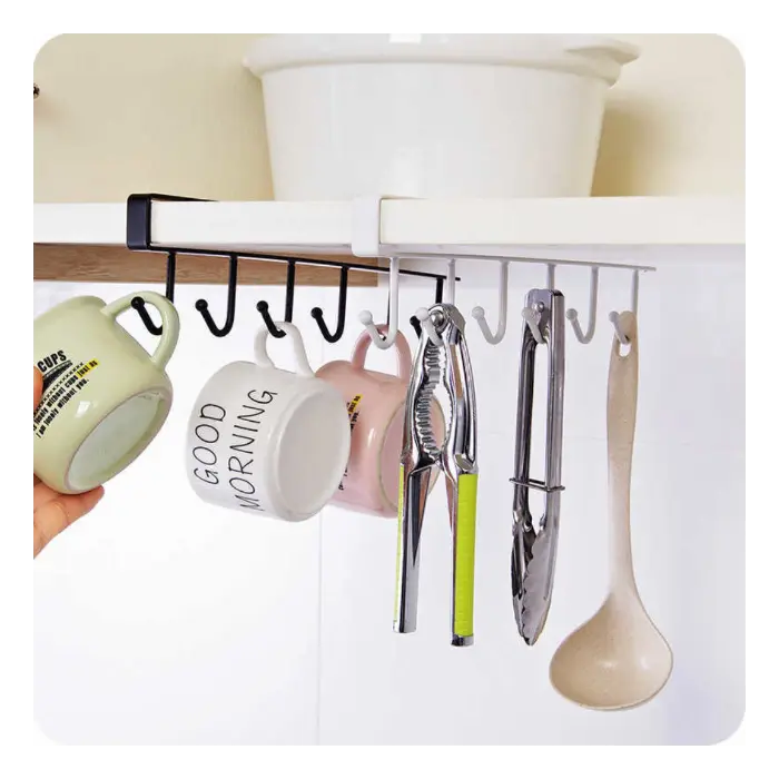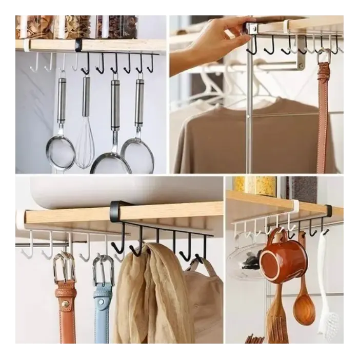 Maximizá el espacio de tu cocina con este práctico organizador colgante para tazas. Fabricado en hierro pintado resistente, se coloca fácilmente en estantes de hasta 2,5 cm de espesor, sin necesidad de tornillos ni instalación complicada.