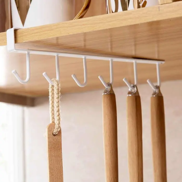 ☕ Organizador Colgante Metálico para Tazas de Alacena – 6 Ganchos