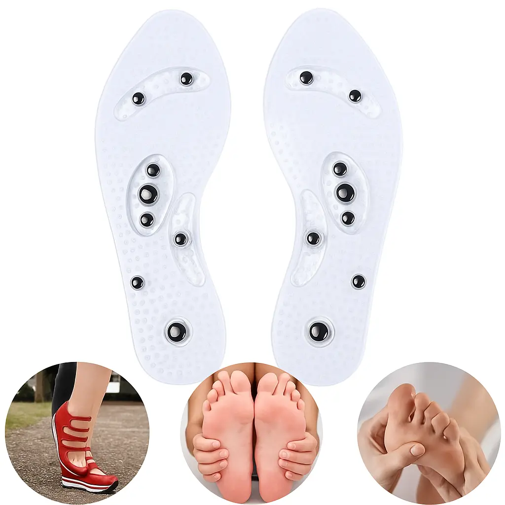 Estas innovadoras plantillas están diseñadas con imanes estratégicamente ubicados y silicona flexible para brindar un masaje de acupresión en cada paso. Ayudan a mejorar la circulación, revitalizar el cuerpo y aliviar la sensación de cansancio en los pies.